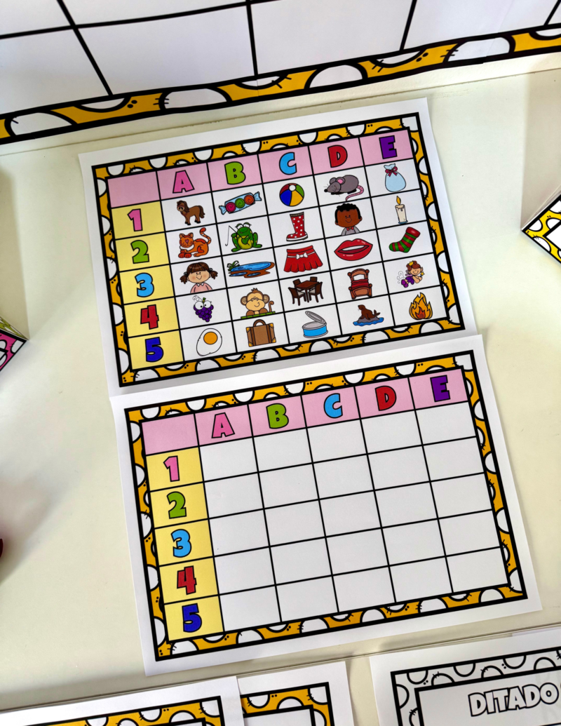 Esse formato torna a atividade dinâmica, visual e altamente motivadora, facilitando a consolidação da escrita de palavras com sílabas simples.